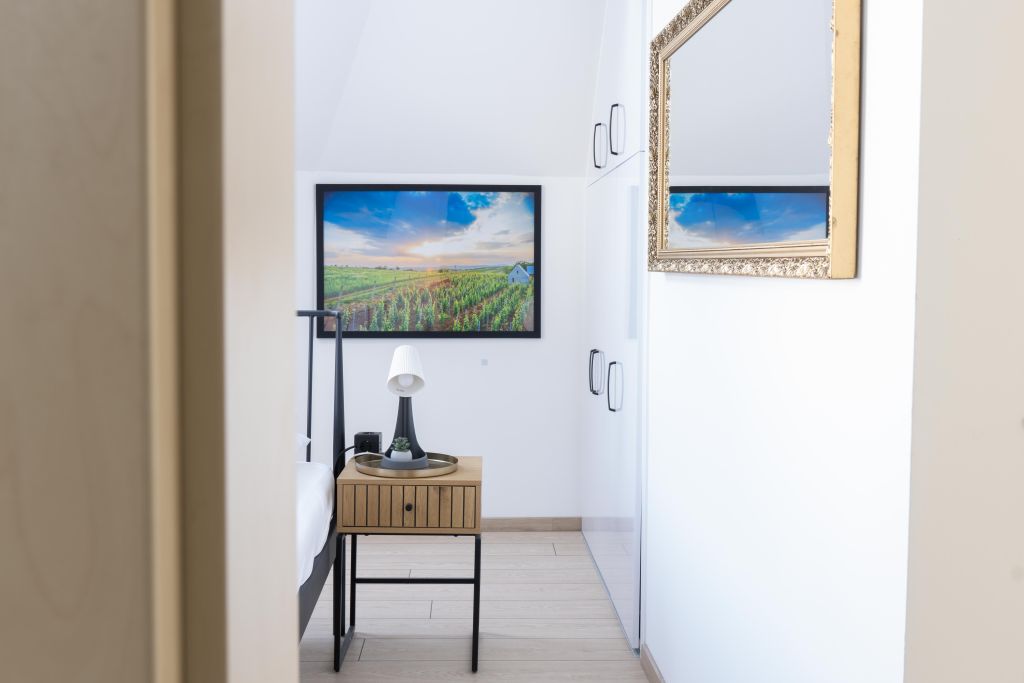 Egyik fürdőszobában walk-in zuhanyzó, a másikban sarokkád található. Továbbá hajszárító, világító kozmetikai tükör, vasaló került elhelyezésre. A szobákban okostv található.